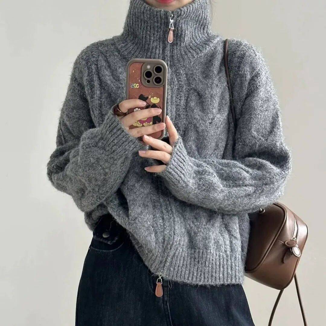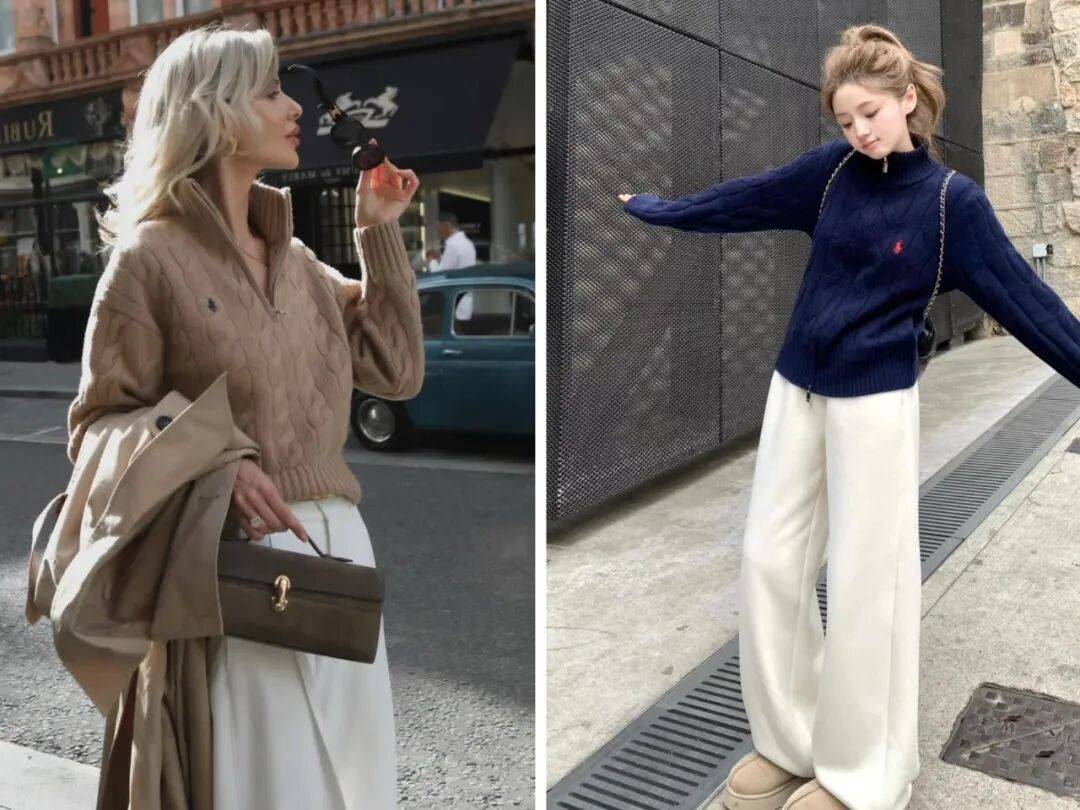 甜而不腻:通过珍珠项链、蝴蝶结耳饰等精致配饰中和针织的随意感;