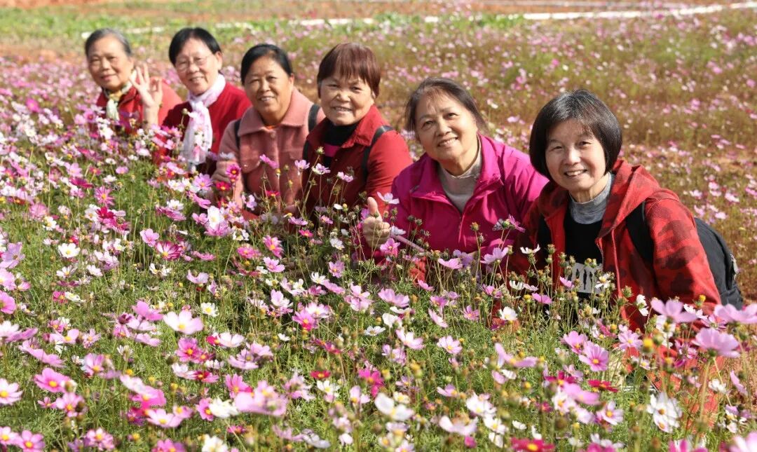 △图源 德庆发布 市民游客纷纷前来 摆出各种打卡姿势, 寻找最佳角度,咔嚓咔嚓, 捕捉自己与格桑花丛的美丽瞬间。