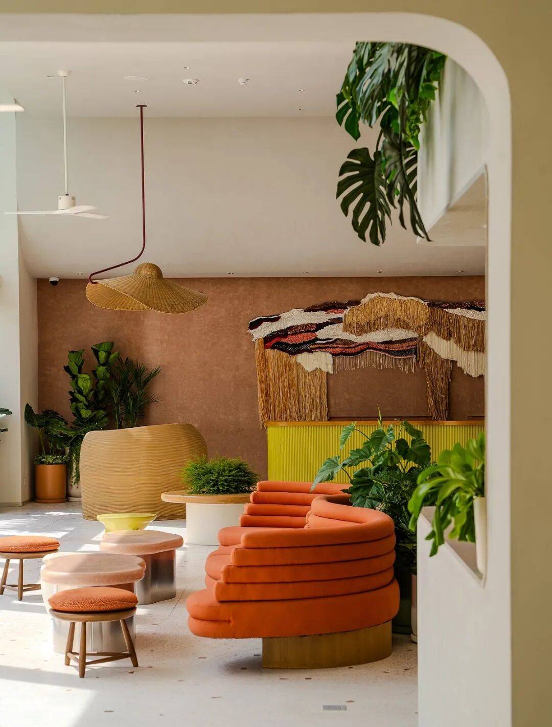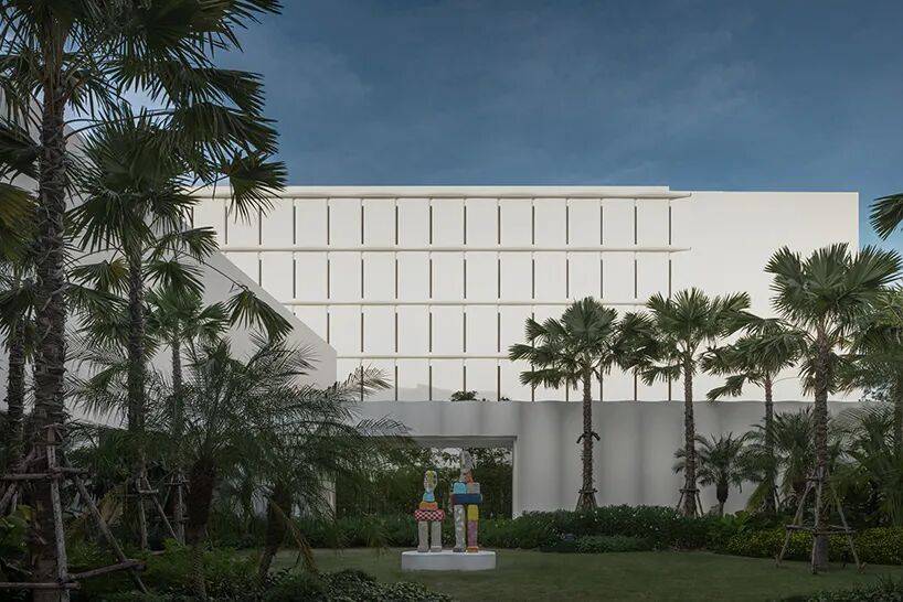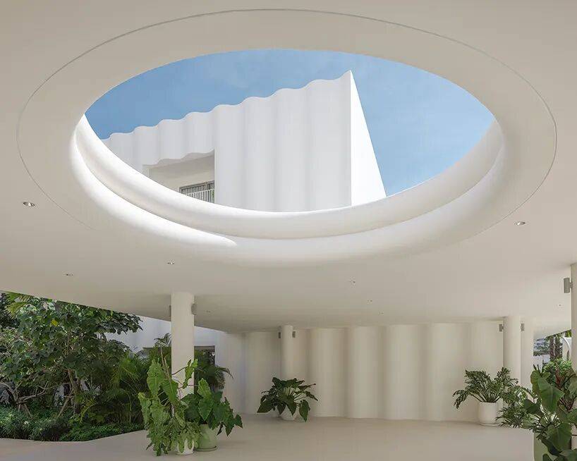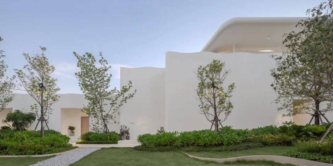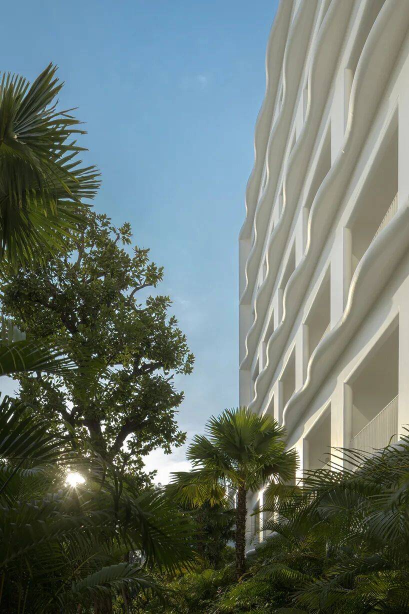 景观与环境整合是该酒店设计的重要部分,景观由 PLA 设计团队负责,将热带植栽与庭院设计结合,在酒店内形成从抵达区至海滩的沉浸式绿色旅程。酒店内大量绿意植栽与光影互动,使户外空间在不同时段呈现不同的表情。建筑外围的雪白波浪立面与绿意植被之间形成鲜明对比,而波浪形曲线同时也消解了建筑体量的刚硬感,使酒店从远处看起来更接近自然海岸的律动与节奏。