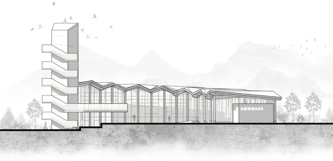 ▲立面图 © 辑禾设计工作室 ▲剖面图 © 辑禾设计工作室 项目名称:当阳·稻义 MAN 村体验馆 项目类型:建筑 设计方:辑禾设计工作室 完成年份:2024 方案主创:成忠溯 设计团队: 郑辑宏、彭蓉、王梅、郑昕晨、余妏劼、赵青、张莉 、王磊、李建平、殷涛 项目地址:湖北省宜昌市当阳市 建筑面积:550.23㎡ 摄影版权:赵奕龙、竺辉奇 施工方:湖北华欣城建工程有限公司 木结构施工:武汉林榔木建筑工程科技有限公司 业主方:当阳市玉阳街道办事处 材料:混凝土、木构、玻璃