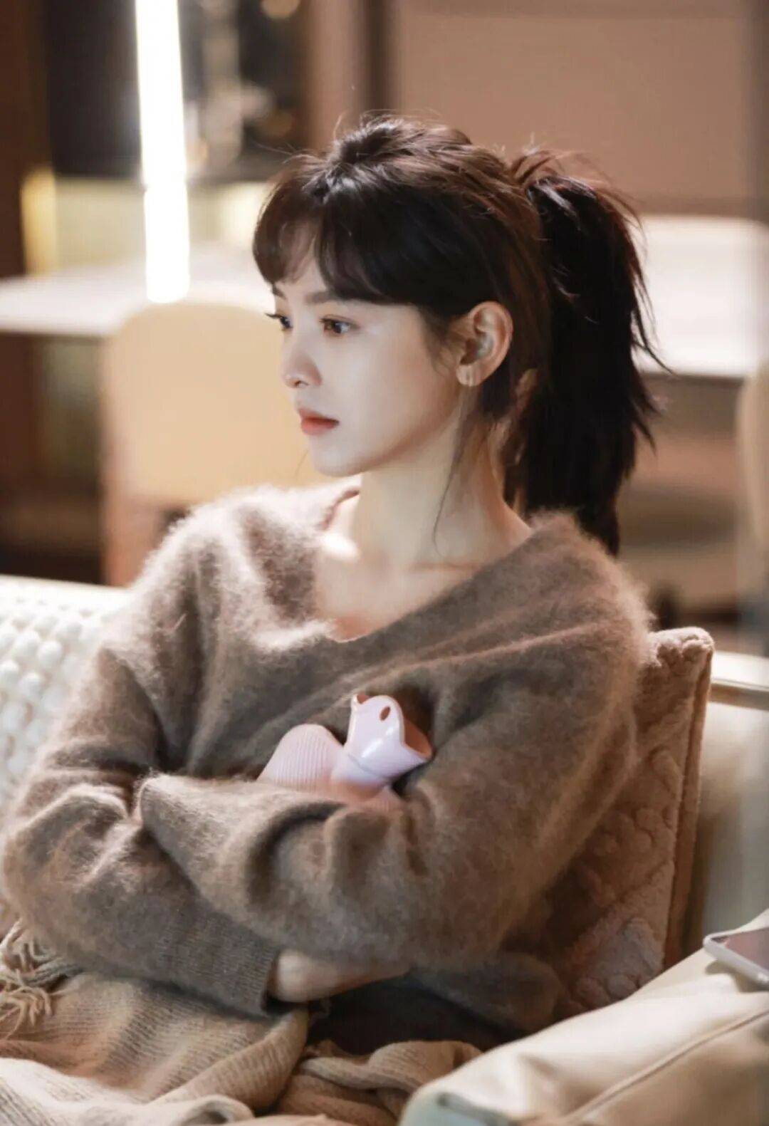 章若楠的这款拉毛毛衣也好好看哦!那柔软的面料,像是刚从一个温暖的被窝里爬出来,带着懒洋洋的劲儿。