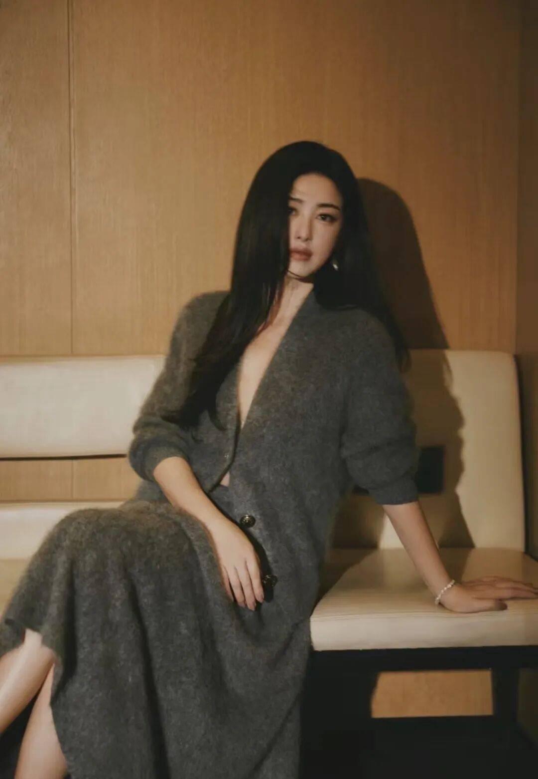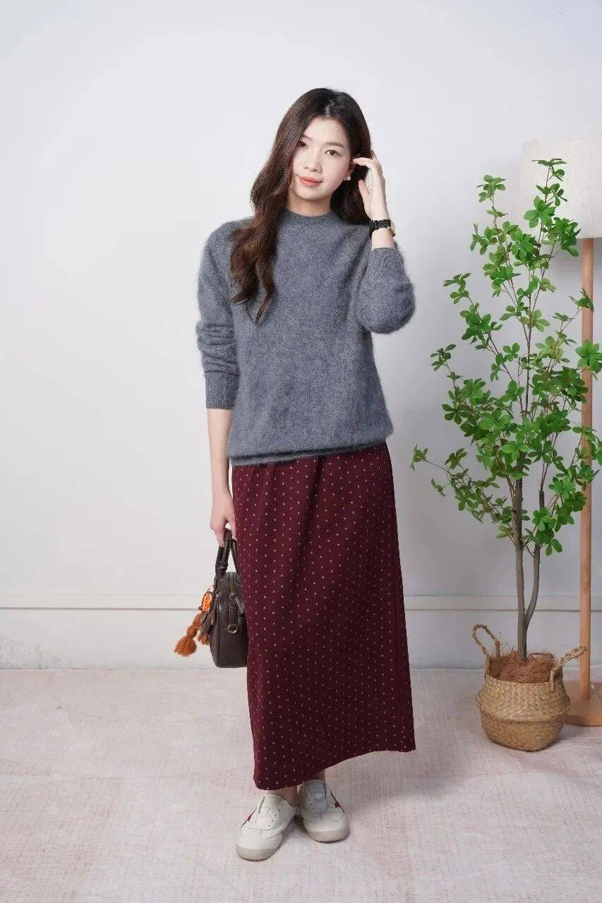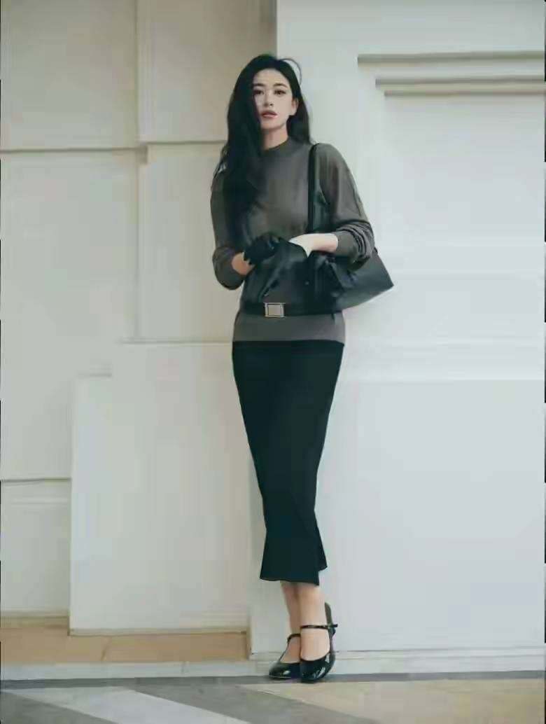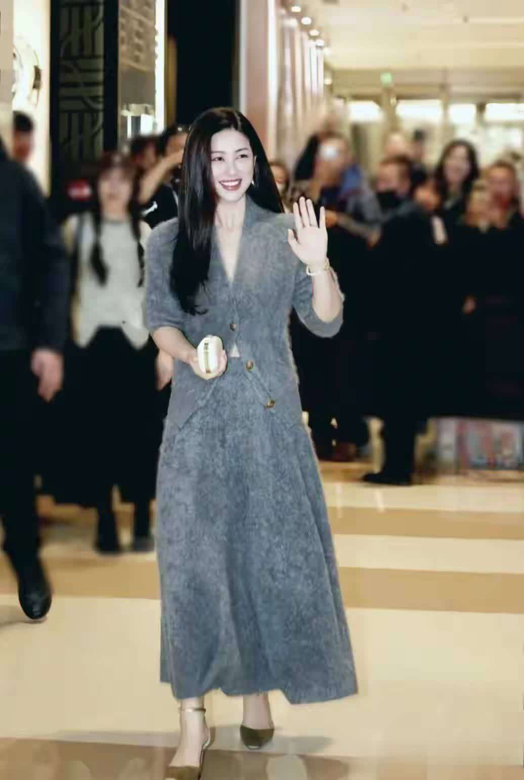 最近朱珠参加活动这套灰色拉毛毛衣+半裙真的是美到心坎里!羊毛的柔软衬得她更加温柔了,慵懒又高级的氛围感直接拉满。