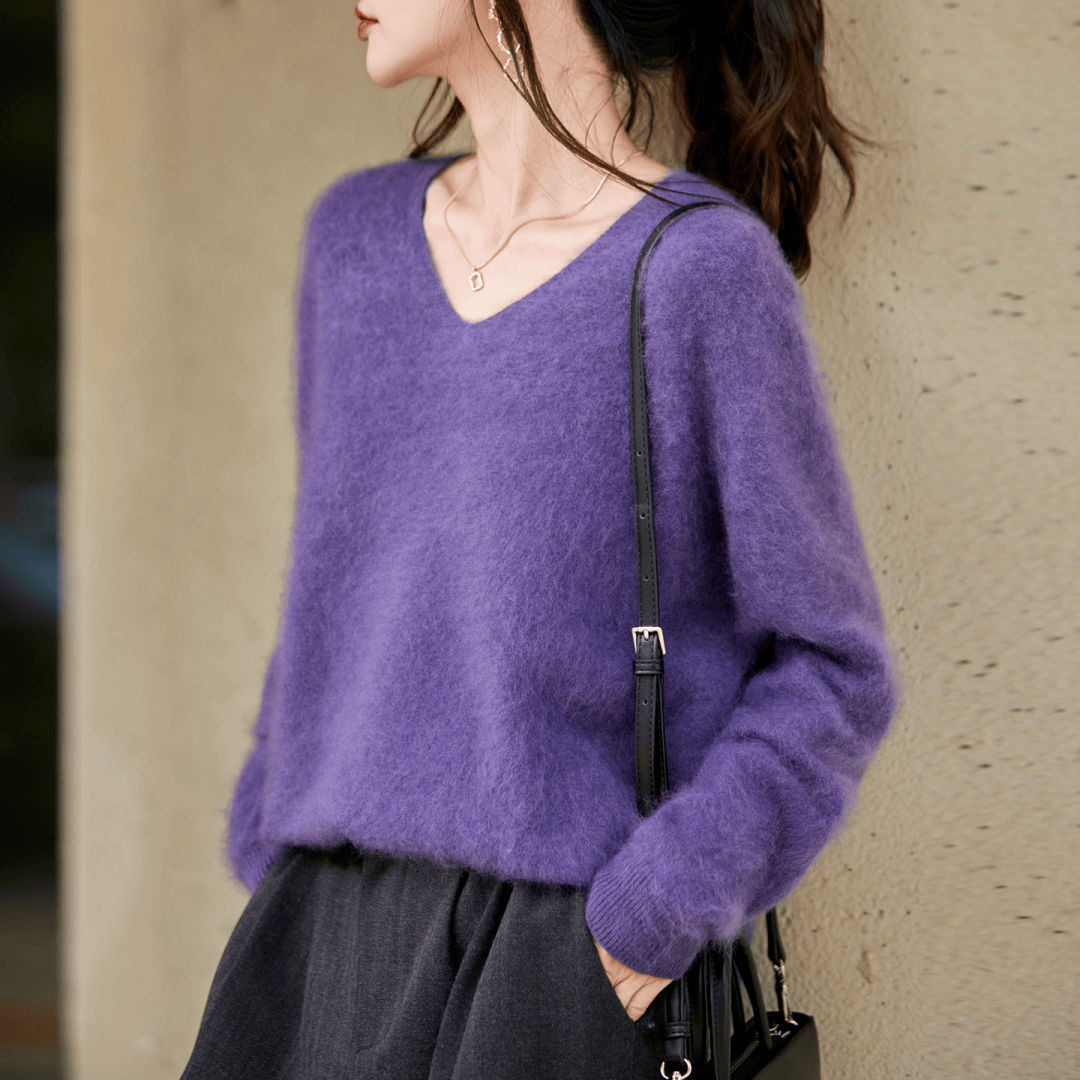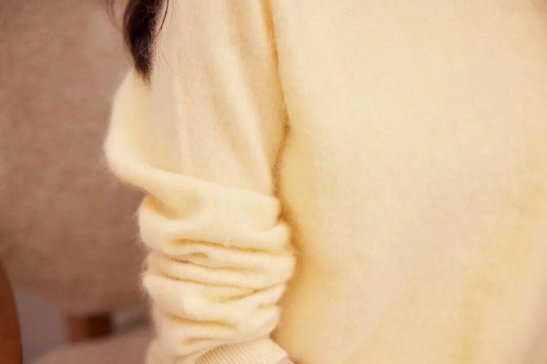 经过拉毛处理的羊毛衫,表面附着的细密绒毛像是雾气缭绕在毛衣四周,朦胧又仙气......