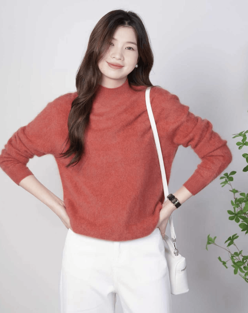 半高领可以修饰脖子线条,很多朋友担心穿高领显得脖子短,就可以放心入手半高领。