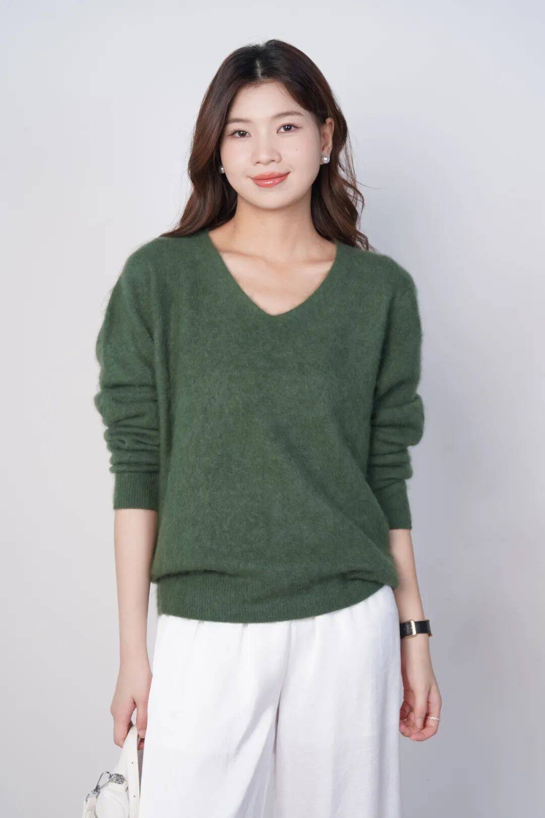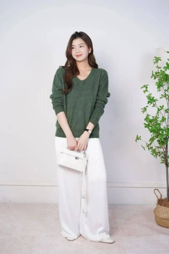 一下将毛衣颜色的美更大化,美得很脱俗。
