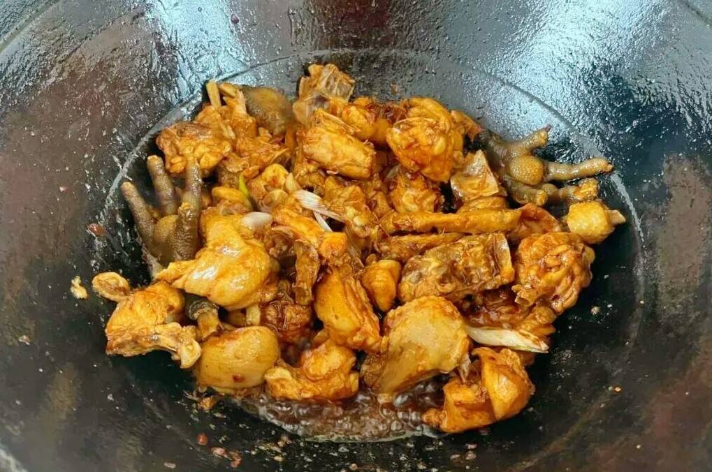 3. 炒出焦香,锅里多倒点花生油,烧热后把鸡块倒进去,大火快速翻炒,一直炒到鸡肉表面金黄发焦,油脂都被逼出来,这是炒鸡香不香的关键!4. 爆香料头,把鸡块拨到一边,用锅里的底油爆香葱姜蒜、干辣椒和各种香料,炒出浓郁的香味。5. 调味上色,加两勺黄豆酱、一勺生抽、半勺老抽,翻炒均匀,让每一块鸡肉都裹上油亮的酱汁。6. 慢炖入味,倒上热水,没过鸡肉,大火烧开后转小火慢炖20分钟。婆婆说,炖鸡的时候不能盖锅盖,这样腥味才能散出去,鸡肉也更紧实。7. 大火收汁,最后开大火收汁,汤汁浓稠发亮的时候,撒点青红辣椒配色,再淋上一小勺香油,这锅炒鸡就大功告成了!