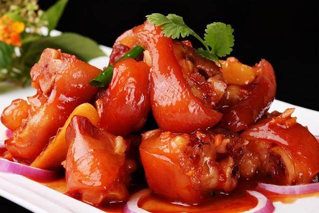 食材:猪蹄,葱姜蒜,料酒,干辣椒,花椒,八角,老抽,醋,盐 做法: 1.猪蹄洗净,姜蒜切片; 2.锅中烧水,放入葱姜片,倒入少许料酒,水开后放猪蹄飞水,撇除浮沫捞出猪蹄; 3.锅中放油,加干辣椒、花椒、大料、姜片、蒜片炒香; 4.放入猪蹄翻炒,加老抽、陈醋、盐调味,添水没过猪蹄; 5.大火烧开转小火至猪蹄熟烂即可收汁。 叉烧茄子