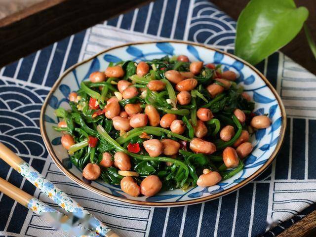 做法:1、菠菜去根清洗干净,锅里烧开水,放入菠菜焯水去掉菠菜中大部分的草酸。 2、冷锅冷油放入花生米,炒到发出噼里啪啦的响声盛出,花生米和菠菜加盐和辣椒酱拌匀后装盘。 锅贴