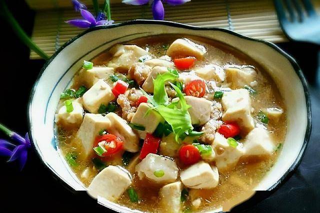材料:嫩豆腐,肉馅,豆瓣酱,香葱,小辣椒,蚝油,淀粉 做法: 1、将豆腐切块、白菜切块、葱切节、姜切成片、大蒜叶切节。 2、准备好粉皮,倒入清水,浸泡3小时左右,将粉皮泡软。 3、锅中倒入油,下入姜片、葱,翻炒数秒。 4、随后将白菜倒入锅中,翻炒至变软时,加入适量料酒、1勺盐,倒入适量清水,以盖过白菜三分之二为宜。 5、待水煮开后,加入豆腐,加盖焖5分钟,接着将粉皮倒入锅中,盖上锅盖继续煮3分钟,加入蒜花、淋入几滴麻油调味。 花生拌菠菜