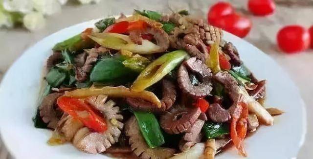 食材: 尖椒 1个、猪耳朵 2个、红椒 1个、食盐 1/2茶匙、姜 1块、蒜 2瓣、八角 1颗、花椒 1/2茶匙、桂皮 1段、香叶 1片、茴香籽 1/2茶匙、植物油 1汤匙; 做法 1.准备好卤猪耳朵的大料:八角、桂皮、茴香、香叶、花椒等,把细小的大料放入调味料钢球中; 2.处理干净的猪耳朵凉水下锅,放入调味料钢球、姜片、料酒、老抽和盐等,大火烧开,转为小火,煮上四十分钟; 3.将卤好的猪耳朵切成小条,再准备好青红椒丝和拍碎的大蒜瓣,锅中烧少许植物油,下入青红椒丝和大蒜瓣翻炒; 4.青椒微微发软后下入猪耳朵条,再加入点料酒、盐和胡椒粉翻炒均匀即可,装入盘中. 香葱炒腰花