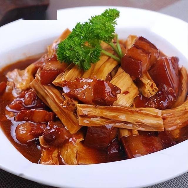 食材:腐竹,五花肉,姜片,酱油,酱汁,冰糖