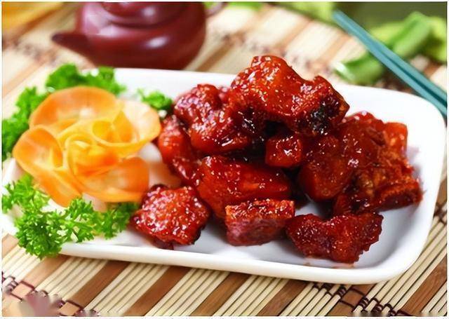 | 图2 | 红亮肉块+胡萝卜花装饰 | 类似《糖醋鱼块》或《红烧肉》风格 |