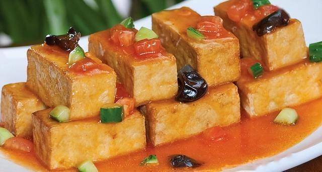 | 图10 | 豆腐方块淋红酱,配葱花、黄瓜丁、木耳 | 可能为改良版《蚝油豆腐》或新创菜 |