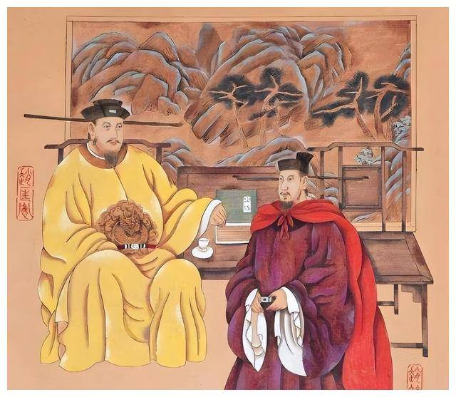 | 图6 | 二人对坐,黄袍紫袍者,山水桌案有书茶 | 文人议事场景 | 类似赵匡胤与钱俶宴会场景的视觉映射 |