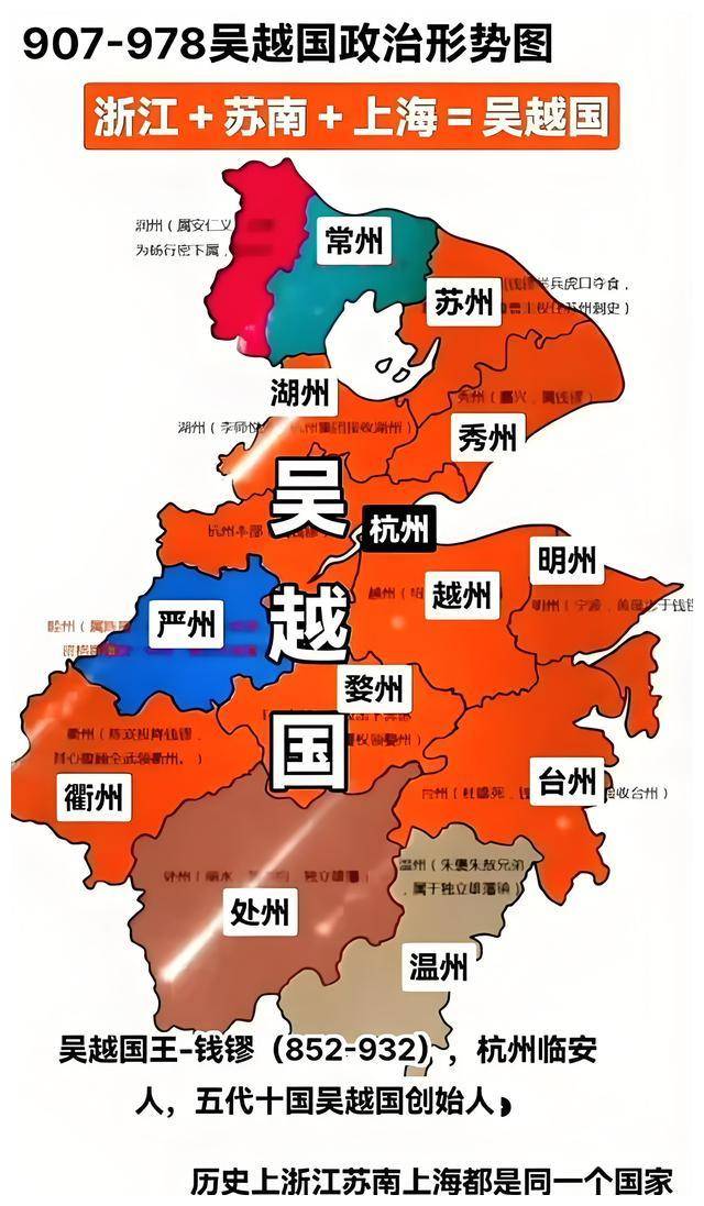📌 参考图7:“浙江+苏南+上海=吴越国”地图明确标注其疆域及钱镠生平。