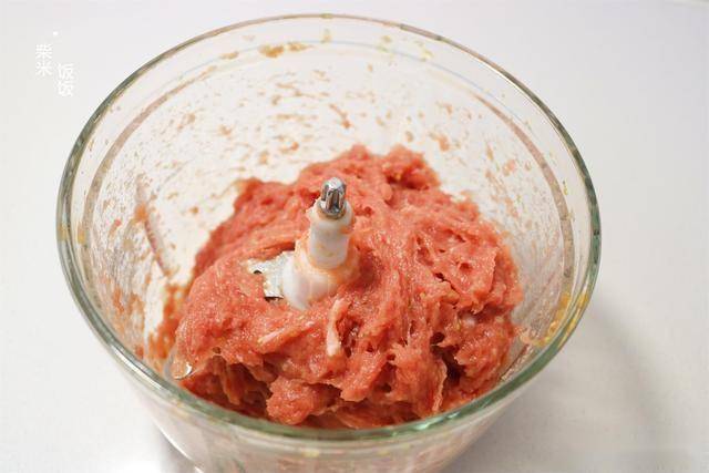 3,绞打成这种细腻黏稠且有弹性的肉馅。