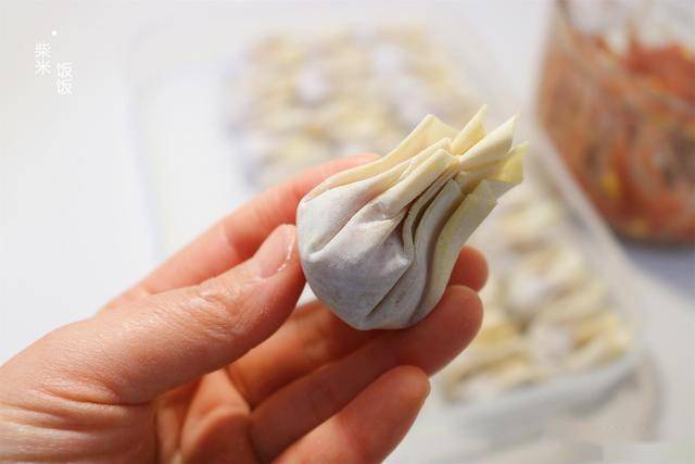 封口处不需要捏得太紧,肉馅很黏很弹,馅料不会散开的。