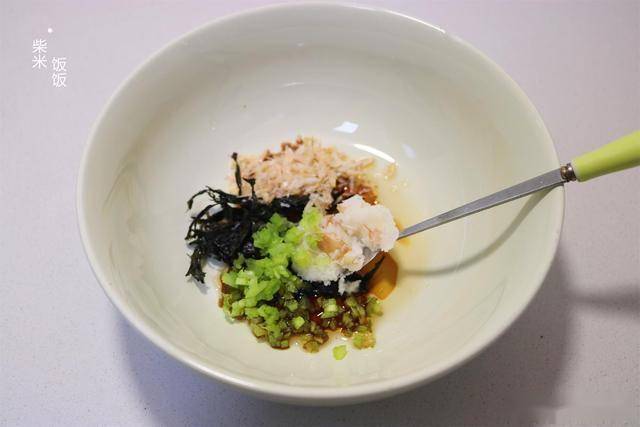 7,碗里加盐、生抽、香油、紫菜、虾皮、猪油、芹菜碎、葱花。