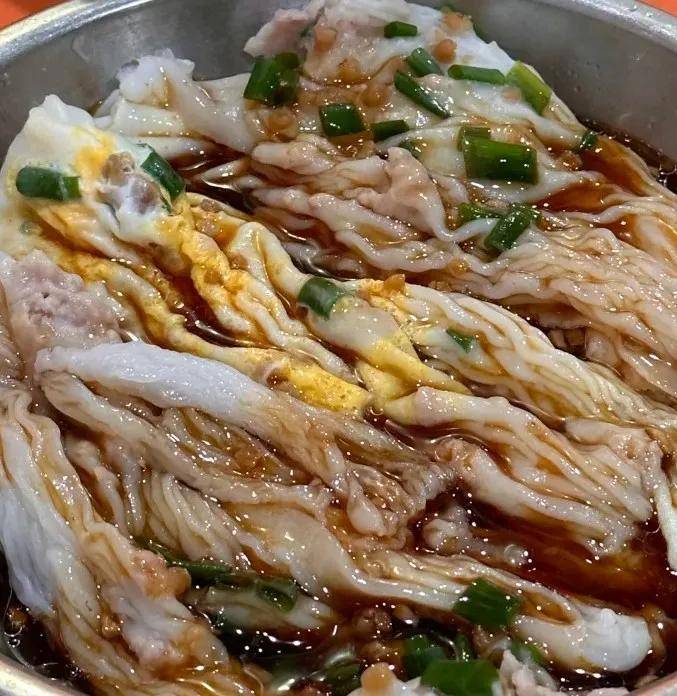 名为肠粉却与大肠没有一丁点的关系,是使用米浆制作而成的,然后加上很薄的米饼,再卷上配菜,吃起来特别的香。