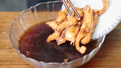 另外一种做法则是先在卤汁里浸透腌上几个钟头,然后再开油锅炸熟,最后再短暂地在卤汁里浸泡一下。两种做法都很常见,口感也一样鲜甜浓郁。