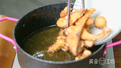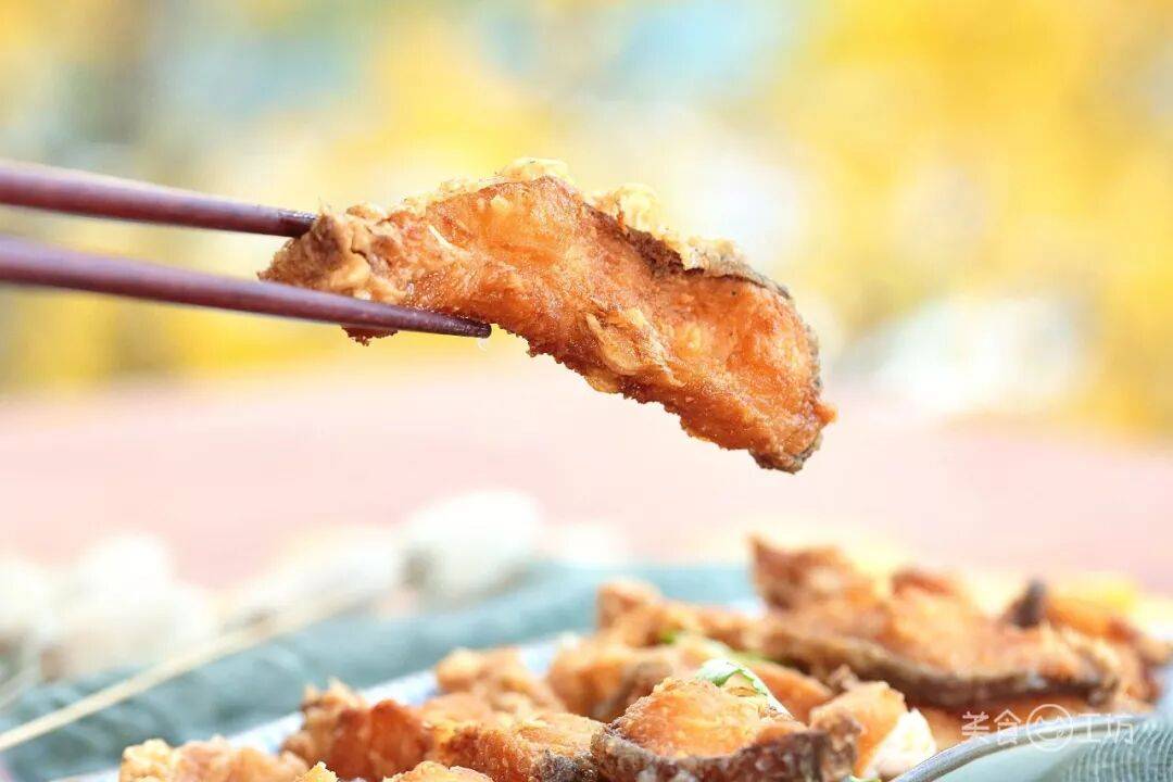 6. 油再烧至七成热,将鱼块再放入锅中炸到金黄焦脆。