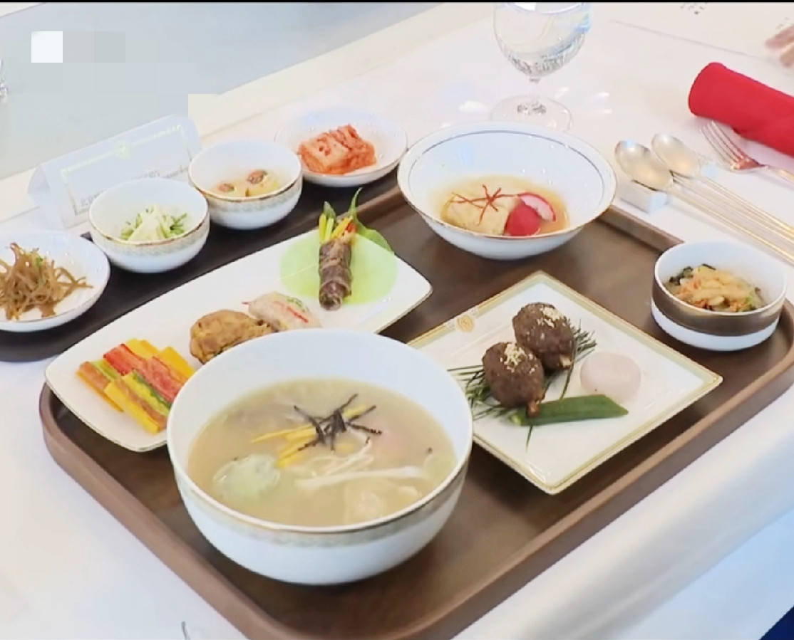 金惠景特意准备了年糕饺子汤、以及烤肉饼等韩国美食。借此机会融合中韩两国的新年文化,助力两国友好交流。