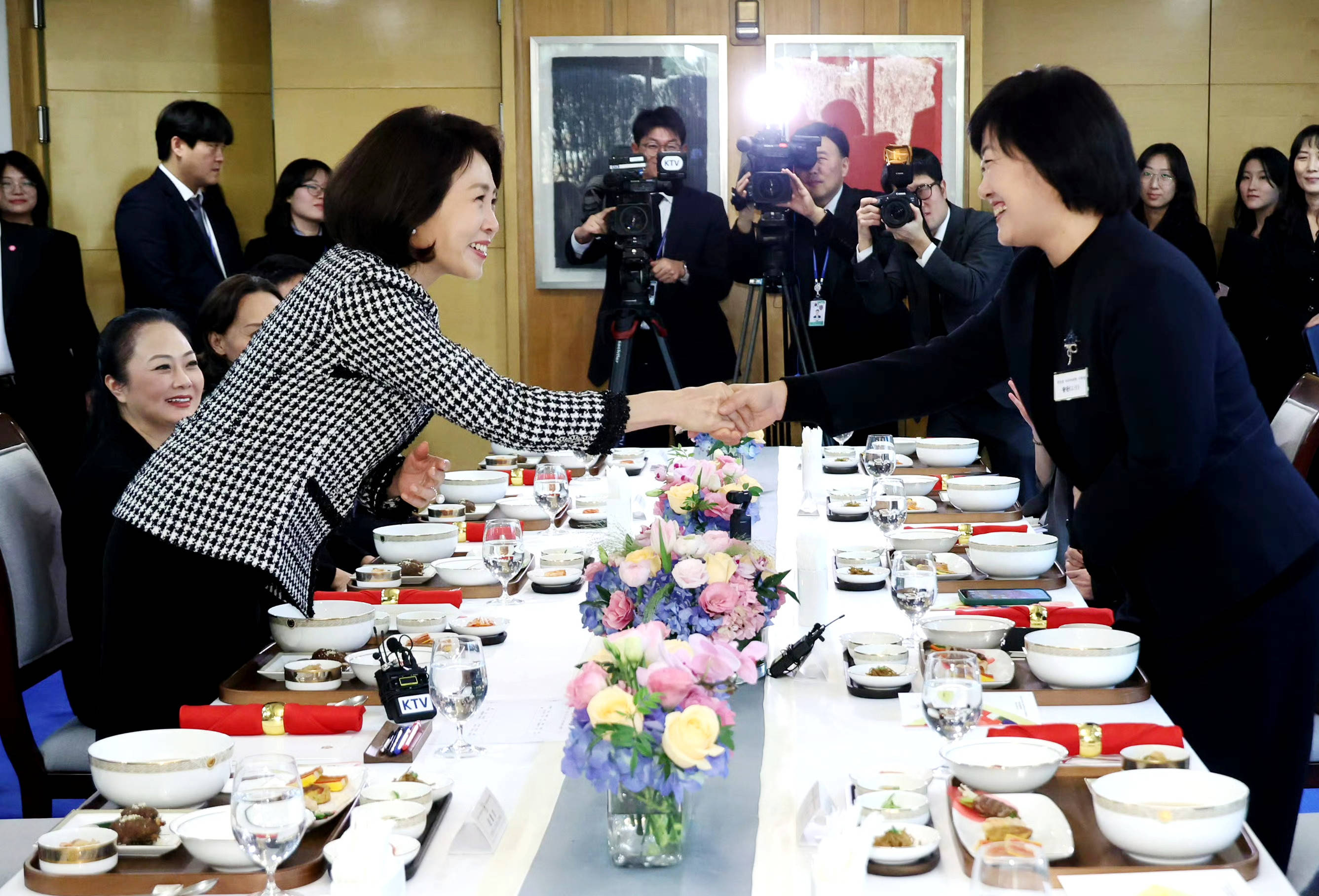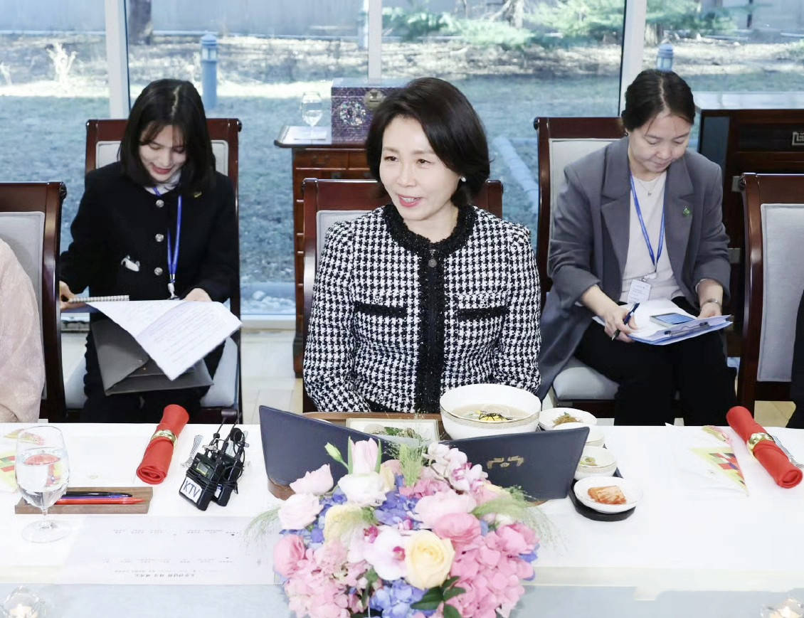 在韩国驻华大使馆举办在中韩交流中发挥桥梁作用的中国女性午餐座谈会,康珊、赵素京、潘小青、张娜、王丹等人参加了会议。