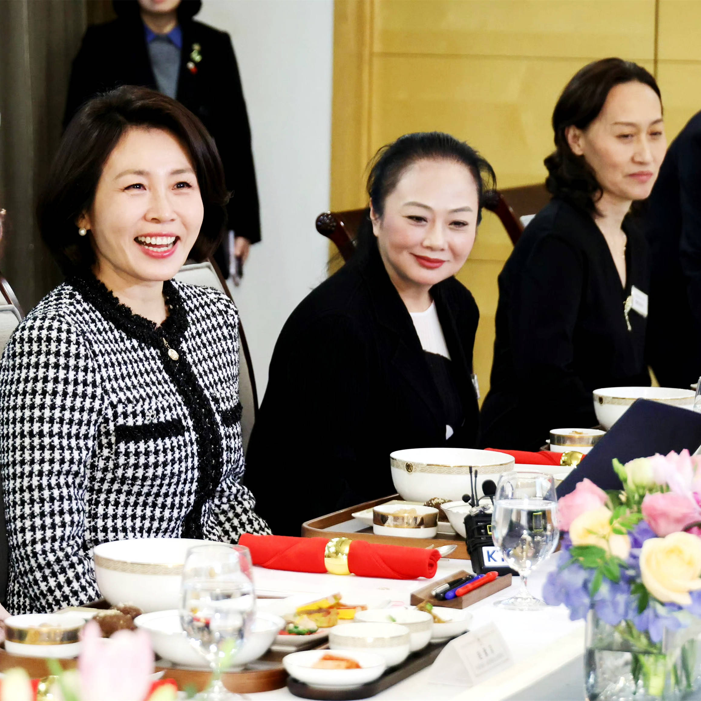 这份贤惠与细致,在访华期间更化作跨越国界的温情表达。金惠景特意在官邸举办午餐会,邀请长期致力于关系友好的代表,亲手烹制年糕饺子汤款待众人。她系着浅蓝色围裙,戴着手套精心操作,每一碗汤都添上分量十足的鸡蛋丝,笑着坦言“妈妈们做饭都这样,家人说好吃就会天天做”。