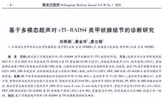 刘秀娟.基于多模态超声对cTI-RADS4类甲状腺结节的诊断研究,黑龙江医药,2025-02-20