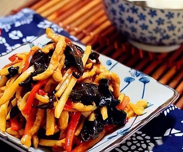 做法:猪肉、笋、胡萝卜、木耳切丝,蒜切末备用,猪肉用水淀粉腌制十几分钟;水烧开后,将笋放入其中焯几分钟,然后盛出备用;取一只干净的小碗,依次放入适量的玉米淀粉、2勺糖、1小勺鸡精、2勺生抽、1小勺盐、4勺醋,再倒入半碗清水,调成碗汁备用;锅中加入适量的油,油热后,将肉丝放入锅中,煸炒至肉丝发白即可盛出备用;锅中留适量的底油,油热后,加入少许豆瓣酱、剁椒、蒜末炒出香味,将肉丝、笋、木耳、胡萝卜依次放入锅中,煸炒匀均,再将碗汁倒入锅中,大火烧开后翻炒匀均,然后关火淋少许香油即可装盘。