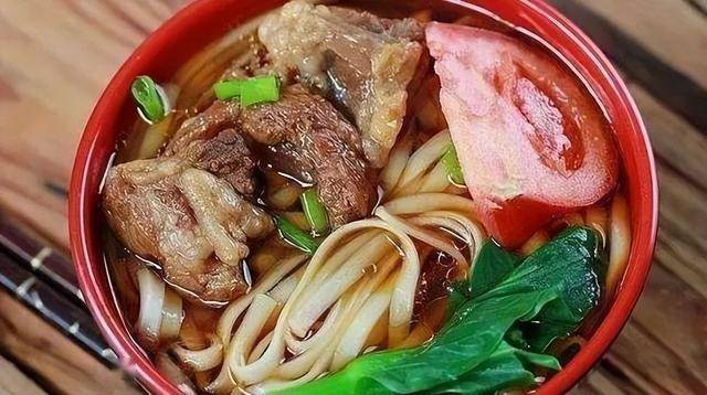 做法:肥瘦相间的牛肉用水彻底洗净表面血水和脏物,放在清水里浸泡,每过一个小时换一次水,浸泡5个小时后剁成大块;锅中加入冷水放入牛肉,煮开后看到牛肉里稀释出很多浮沫,把牛肉在锅里清洗干净后拿出备用;准备好调料,热锅冷油,加入辣椒丝、大蒜、生姜、香叶、陈皮、八角、小茴香、桂皮和洋葱,加入一小块冰糖翻炒到融化,加入一勺番茄酱、一勺豆瓣酱、香葱继续翻炒到香味浓郁,加入焯好水的牛肉块翻炒,牛肉块上色后加入酱油再翻炒;牛肉和其他调料放入高压锅,水量到锅的三分之二满左右,盖上锅盖,大火煮到保险盖发出扑哧声后改中火煮半个小时;在另一锅里放水煮开,把面条煮到喜欢的软硬程度,放到煮好的汤料里,可在汤料里再煮点青菜或者西红柿。