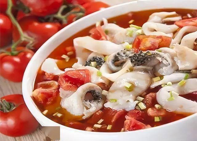 做法:乌鱼宰杀洗净,取带皮净鱼肉片成薄片,放碗加盐、料酒、胡椒粉、鸡蛋清和生粉码味上浆;番茄洗净在炭火上烤香后撕皮切块;净锅放鸡油烧热,下番茄块炒至翻沙,加入鲜汤烧开,下入面片、花菜煮熟并放盐调味后盛入碗中;锅洗净加清水,烧开后下乌鱼片汆熟,捞出来放番茄汤碗内,撒些葱花。