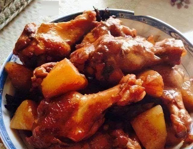 做法:鸡腿在水中浸泡解冻,浸泡时间依据解冻程度;土豆削皮,切成小块儿,浸泡在水中沉淀淀粉;鸡腿用适量盐、老抽/酱油、少许料酒、一勺生粉腌制30分钟(15分钟时将鸡腿翻身);热锅倒油,放八角/大料、干辣椒、蒜瓣呛锅,待炒出香味,放入腌制好的鸡腿大火炒4 - 5分钟,放两碗清水,中火炖30 - 35分钟,出锅前10分钟放入土豆,视乎个人口味,可放入少量糖和豆瓣酱调味。