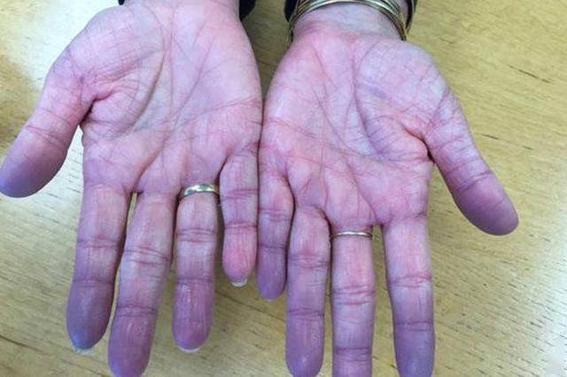 血液中的氧气含量下降,从而表现为手部或其他部位的皮肤苍白或发紫。这种情况常常伴随气短、呼吸困难等症状,说明肺部健康可能已经受到严重威胁。